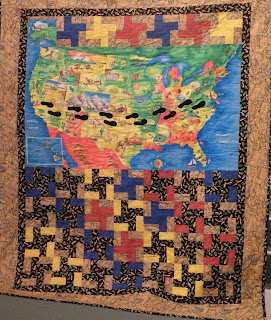 This quilt presented by the Prayer&Square to Keela as a big thank you for her work on behalf of wounded veterans. Keela is athletic and strong. She is a fitness trainer and had wondered how she could use her abilities to glorify God’s Name. She had decided to walk miles accross the USA and raise money on behalf of those who sacrificed for the country’s freedoms. She has done this twice. She has taken prayer military quilts to patients at the Walter Reed Army Medical Center in DC. The team of quilters decided to create one just for Keela as a “thank you” and for her encouragement-she had gone through a tough time recently. Keela was so surprised and very grateful for everyone’s support this evening!